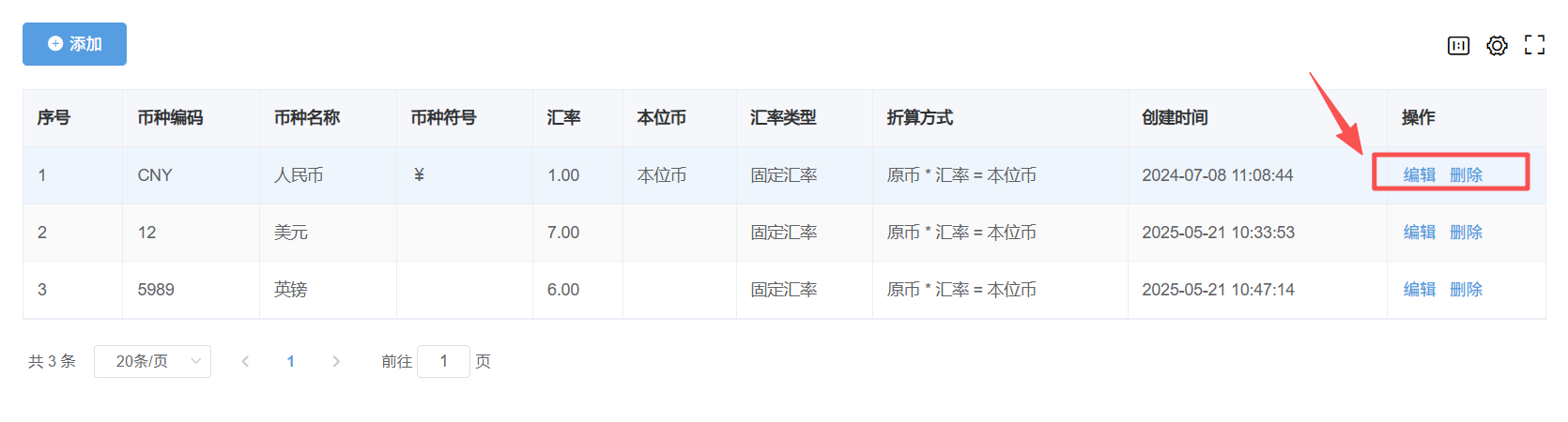 1:点击添加 输入币种编码,币种名称,根据是填币种,填写对应汇率