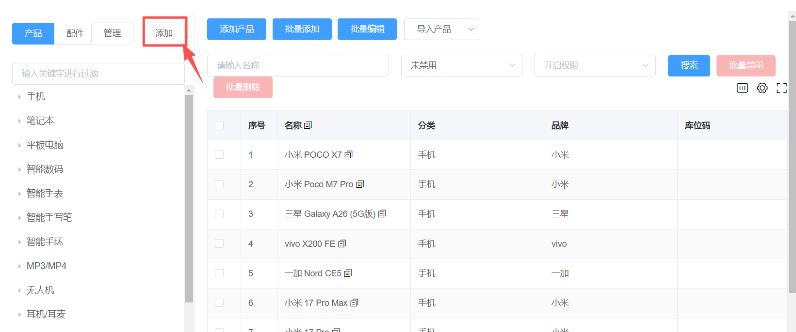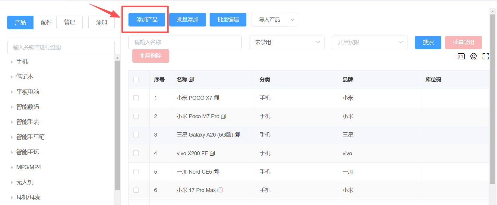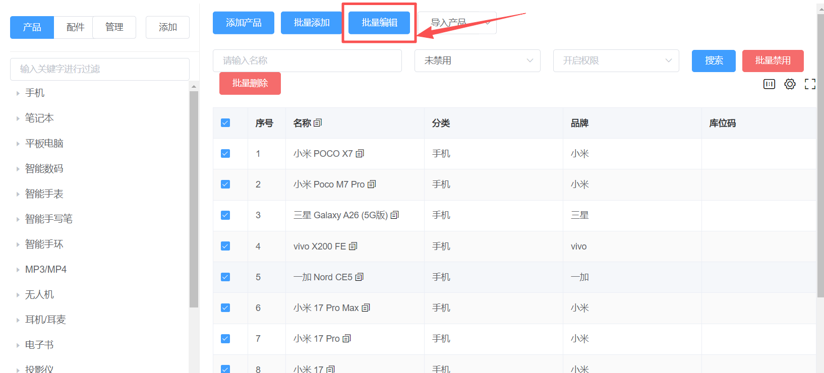 2.5:可批量禁用部分产品及批量删除部分产品信息
