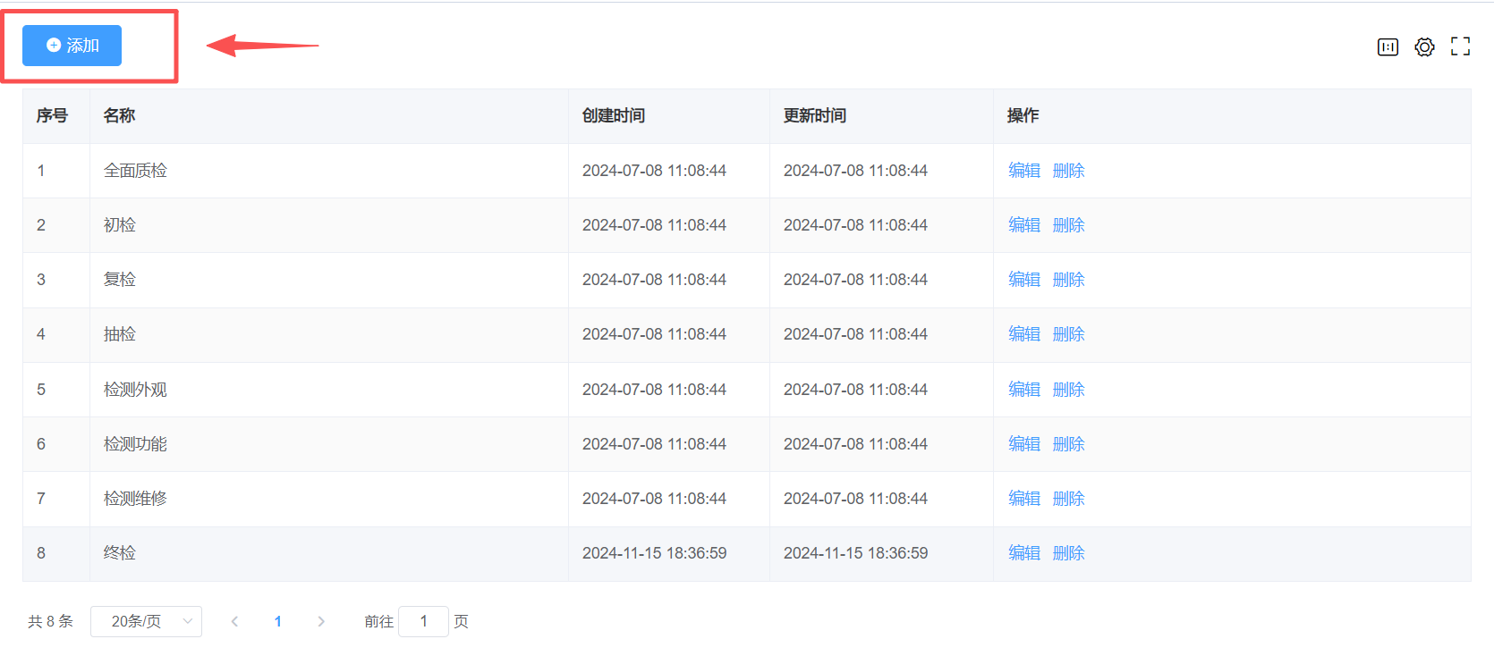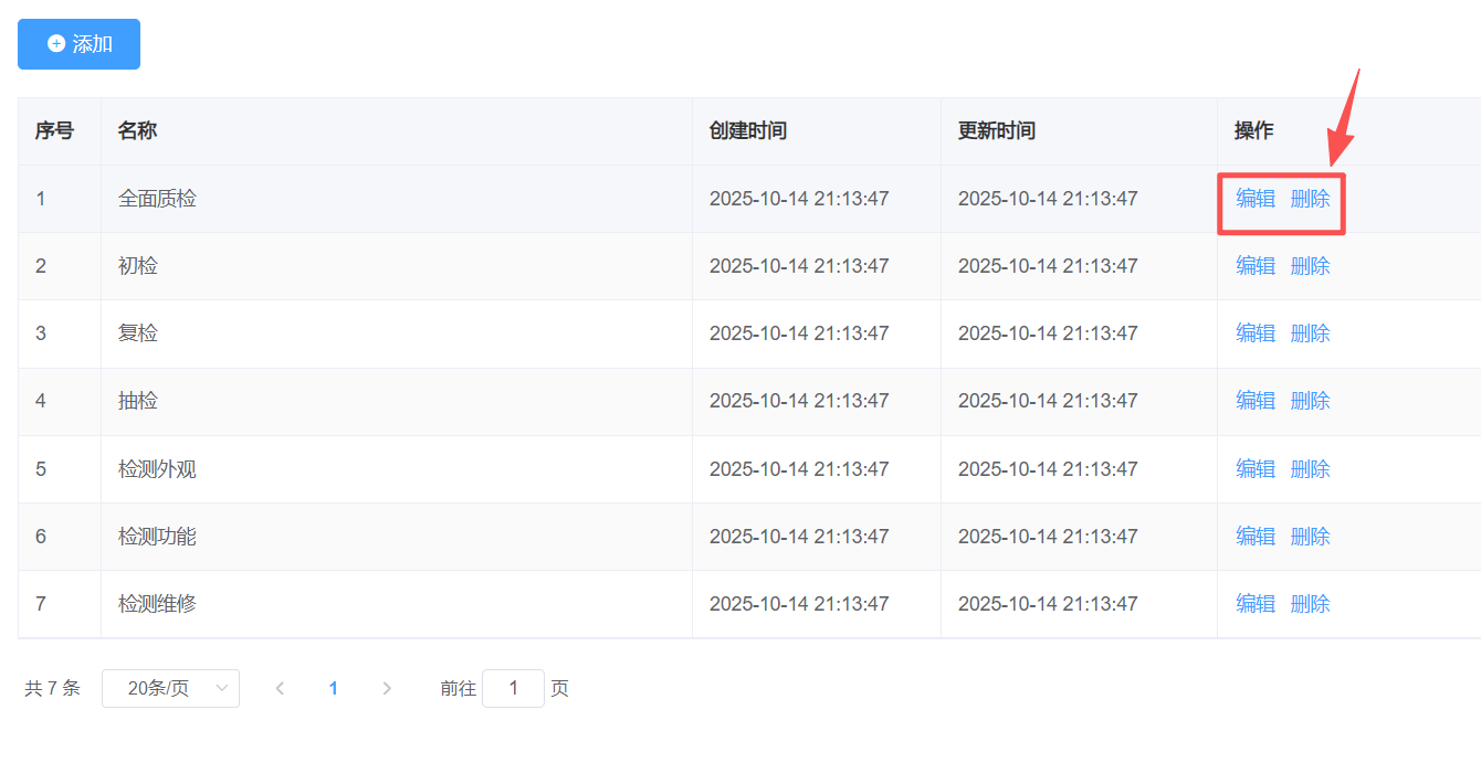 可点击编辑或删除 质检类型