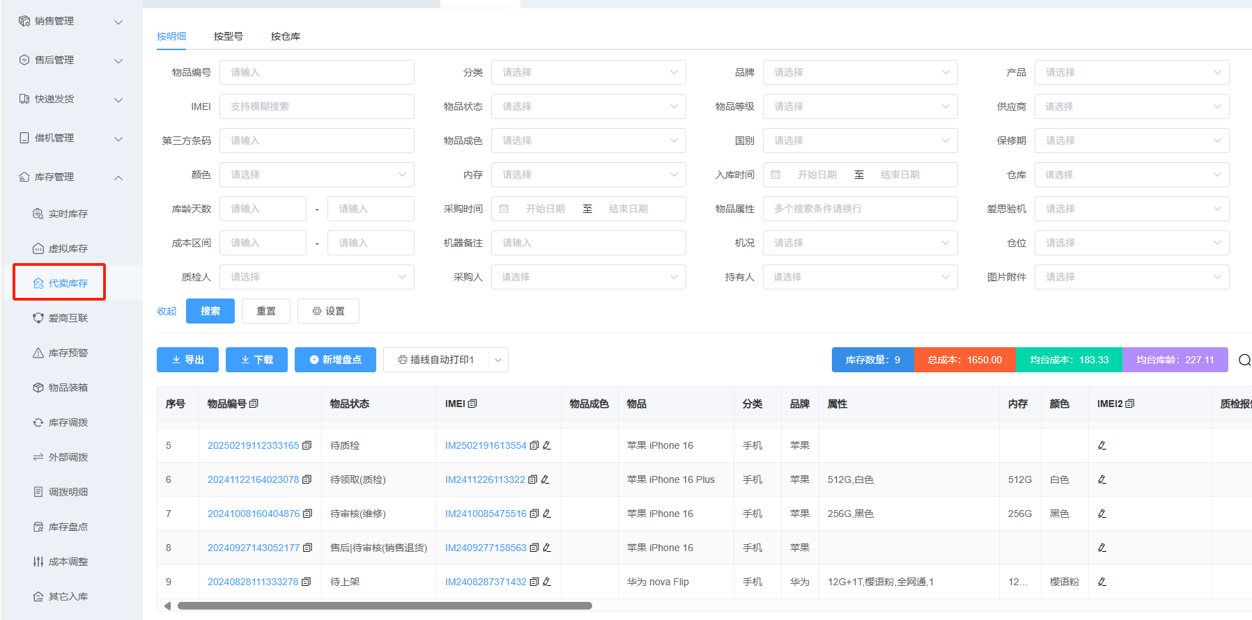 2:在库存管理-代卖库存表里可查看尚未销售的代卖物品