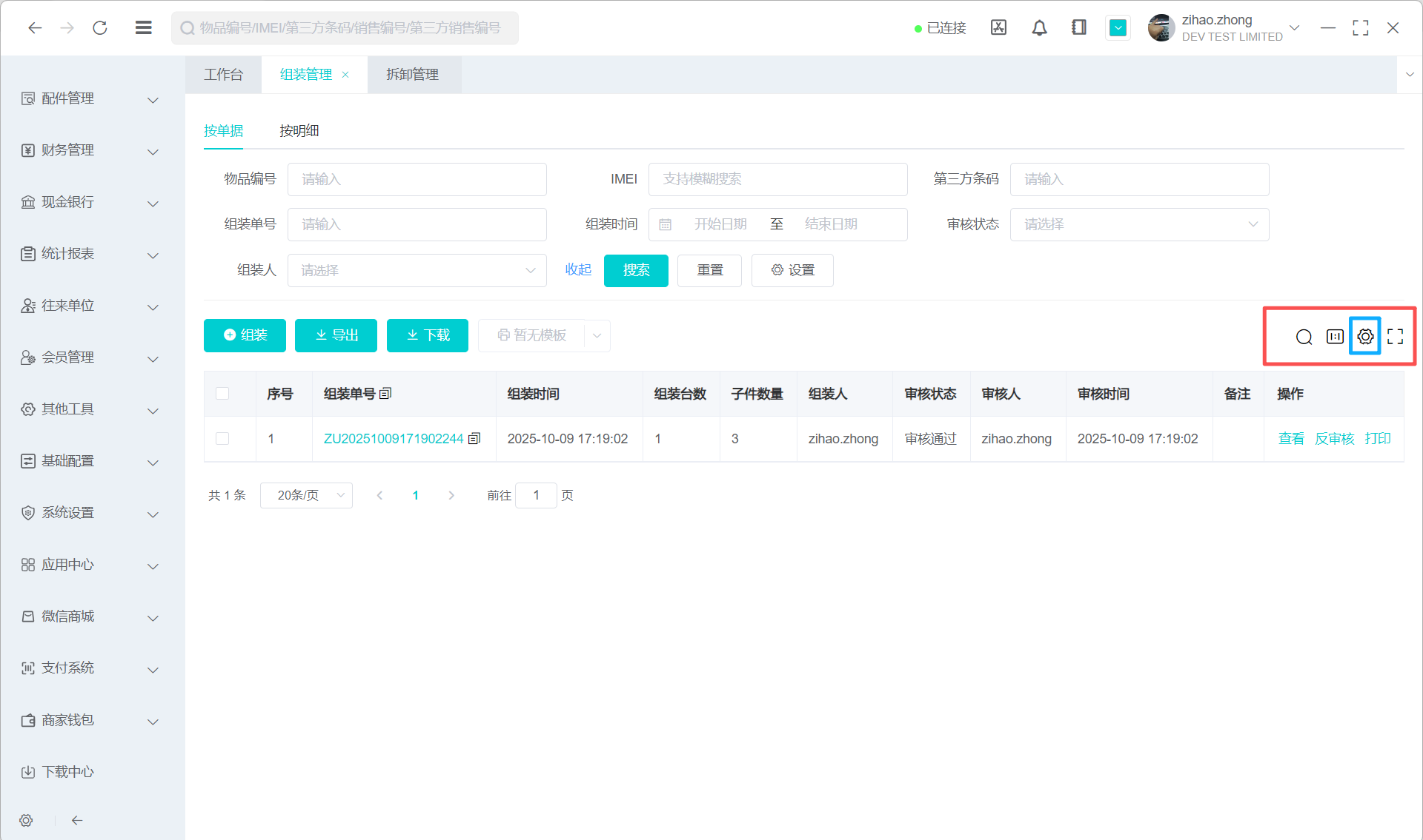 2.2.2. 对于待审核的确认组装订单,有权限的管理员点击行尾审核即可生效
