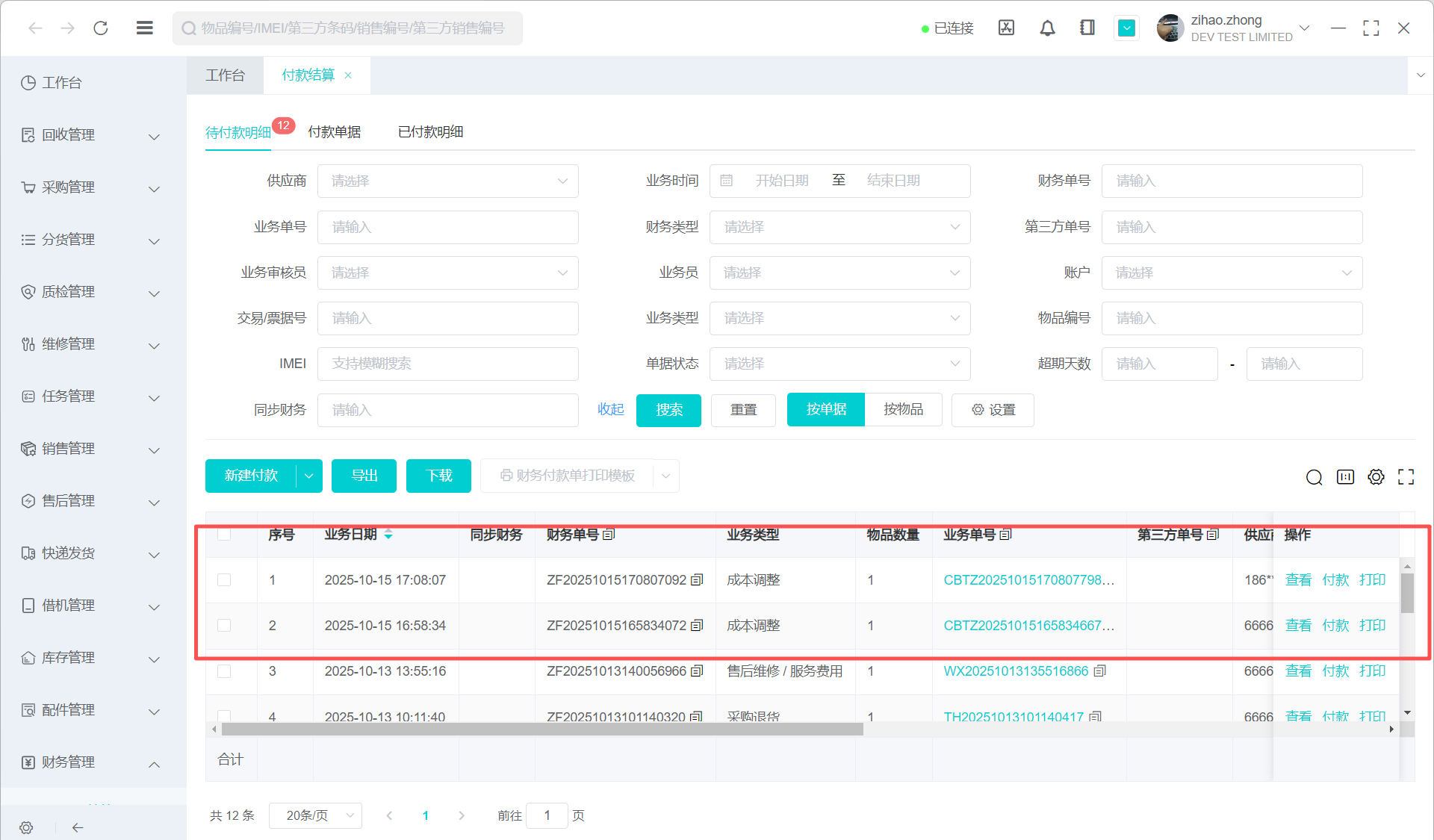 4.调整产生的费用在财务管理-付款结算里面,去进行付款
