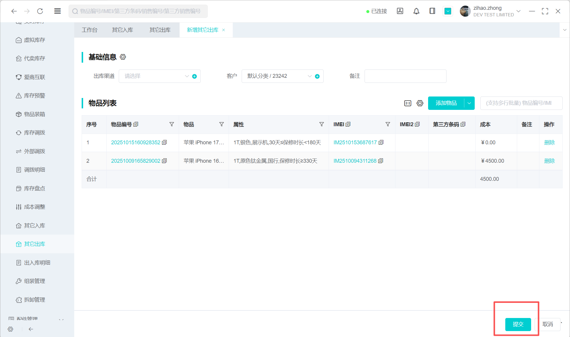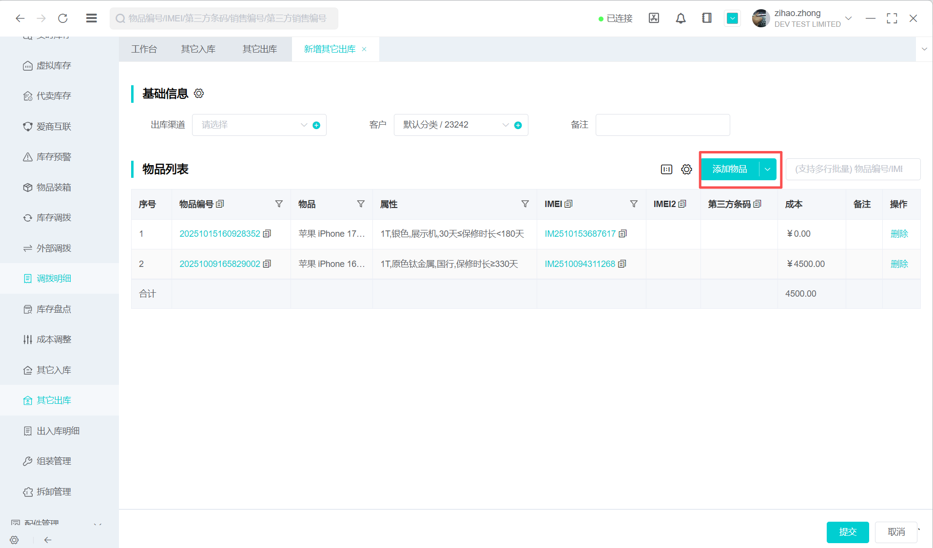 区别于正常销售流程的其他物品出库的方式。此方式出库的物品无需走审核、销售等流程。一般用于特殊出库。