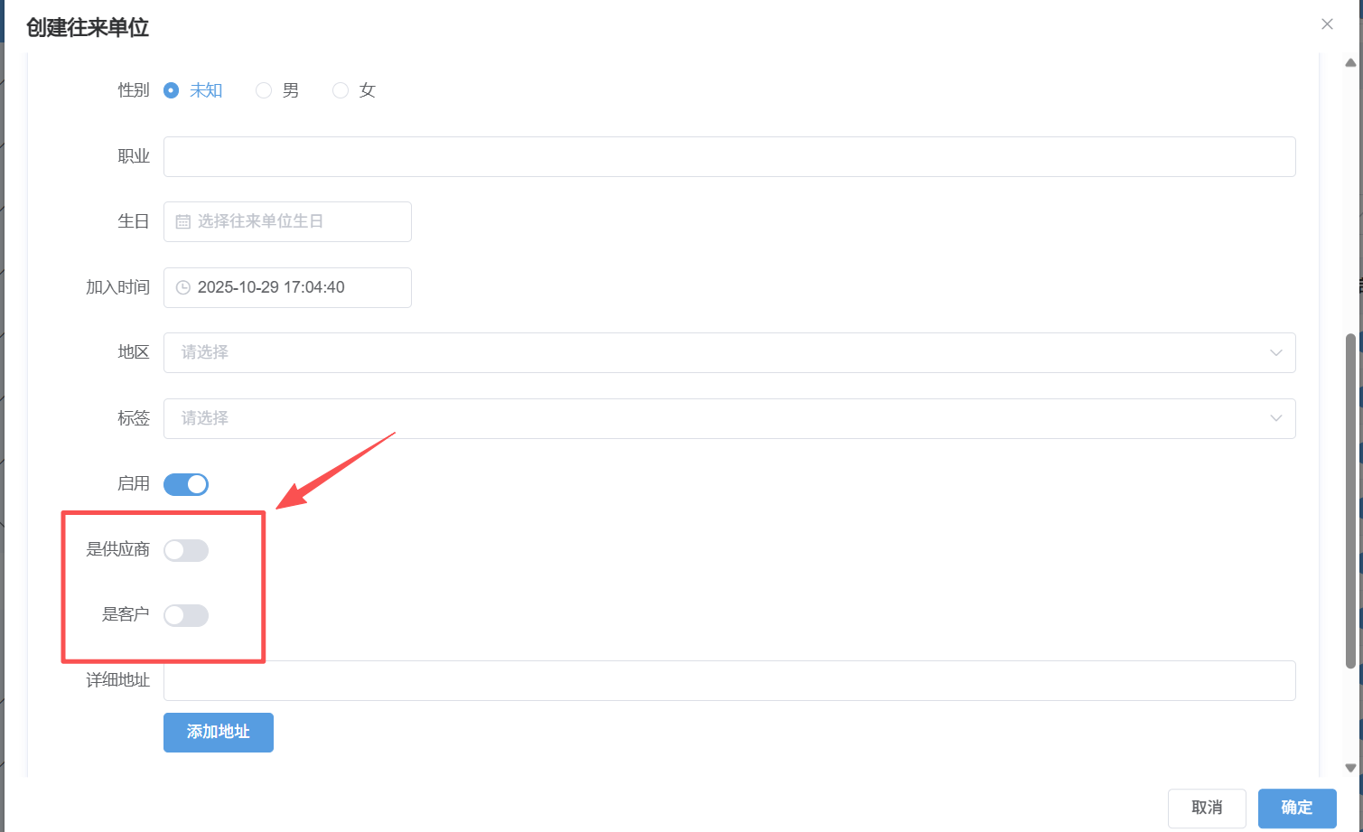 注:添加所需供应商及客户信息名称