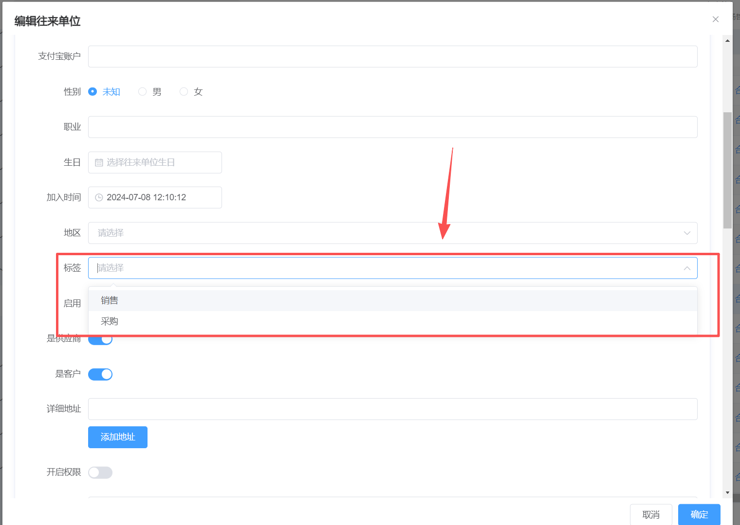1.1:添加后的客户名称使用 在往来单位可选择使用