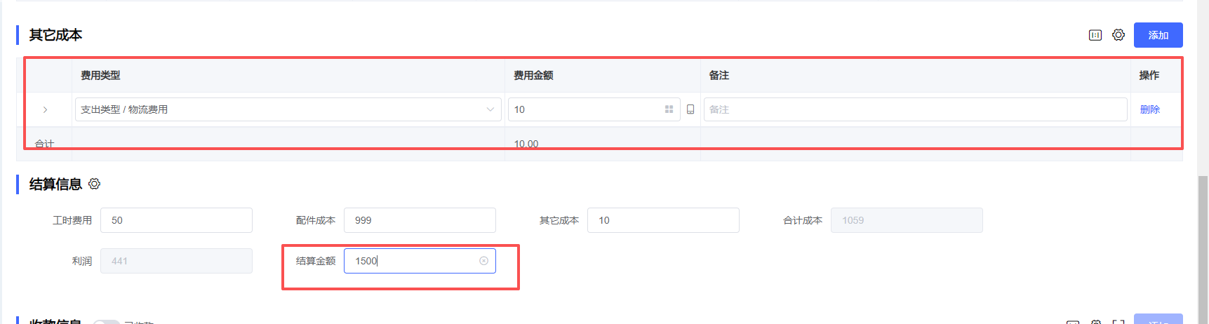 6、选填其他成本例如快递费等和跟顾客的结算金额,系统会自动核算出利润,如下图所示:
