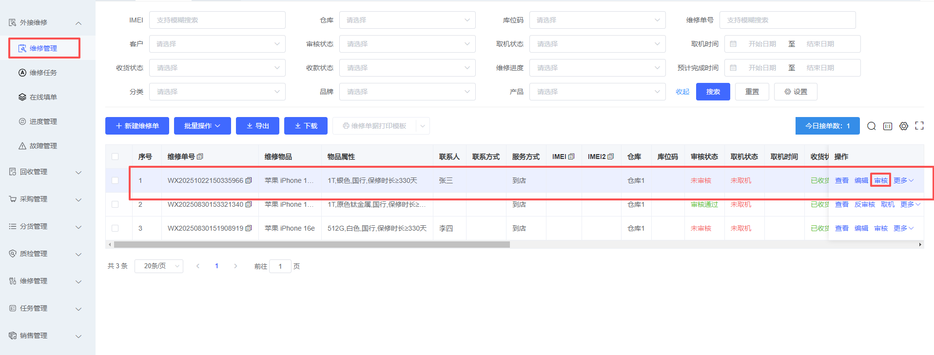 9、维修完成后点击审核即可完成所有维修流程,如下图所示: