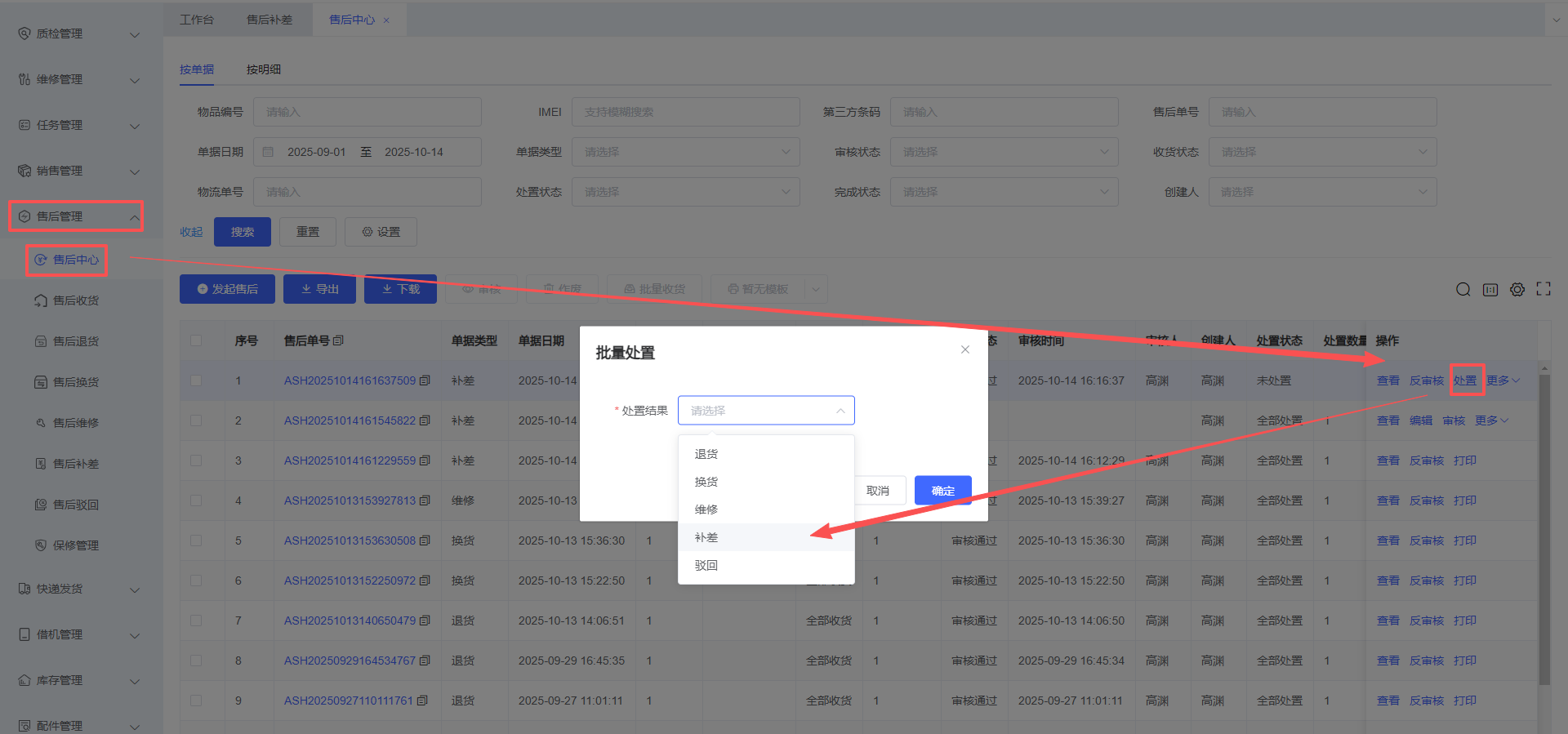 1、售后补差需要在售后中心处置中给到初步补差信息,如下图所示:
