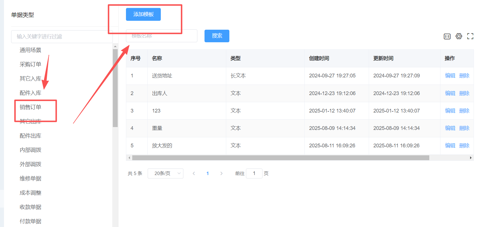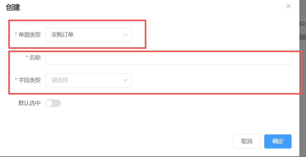 2:选择单据类型,输入所添加单据名称,选择字段类型