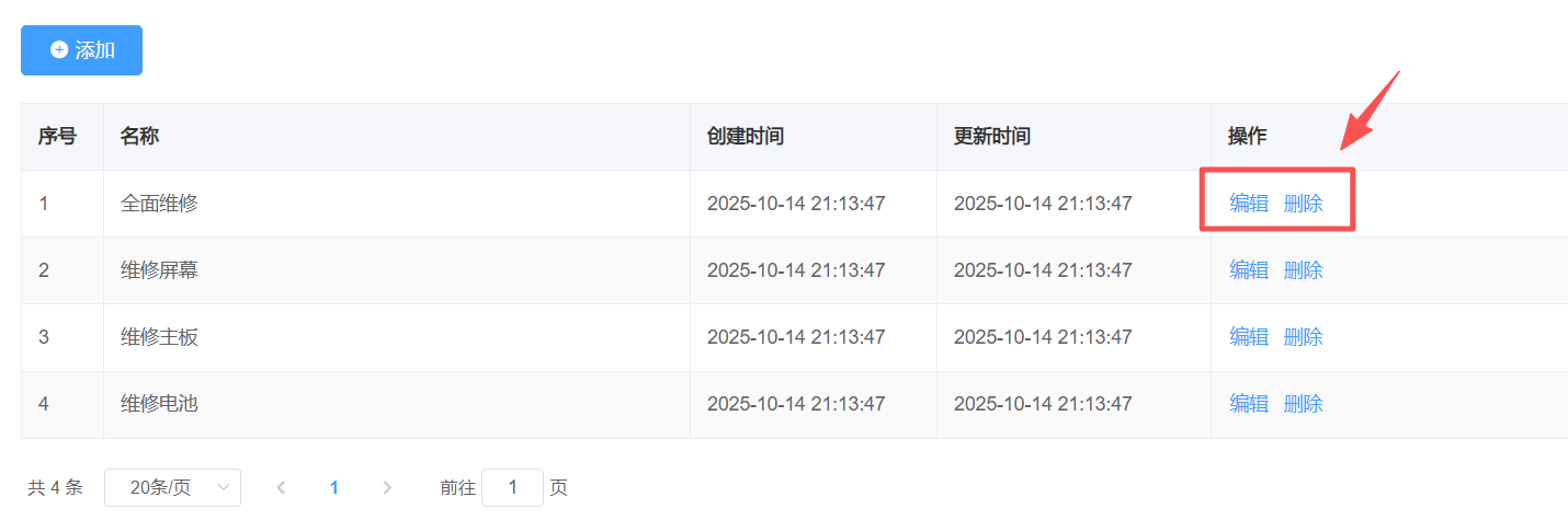 可点击编辑或删除维修类型 名称